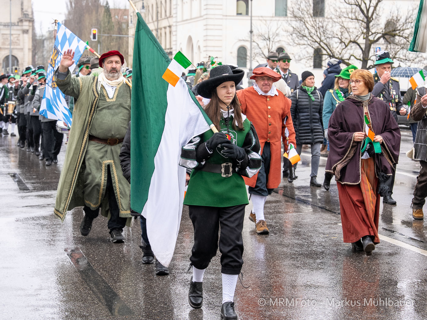 Angeführt wurde der Zug traditionell von St. Patrick, dargestellt durch den Münchner Wolfgang Schramm. Ihm zur Seite standen der diesjährige Grand Marshal Helen Kreuz sowie die Parade Princess Nina Caitríona O’Shea, die gemeinsam den festlichen Zug durch die Stadt führten.