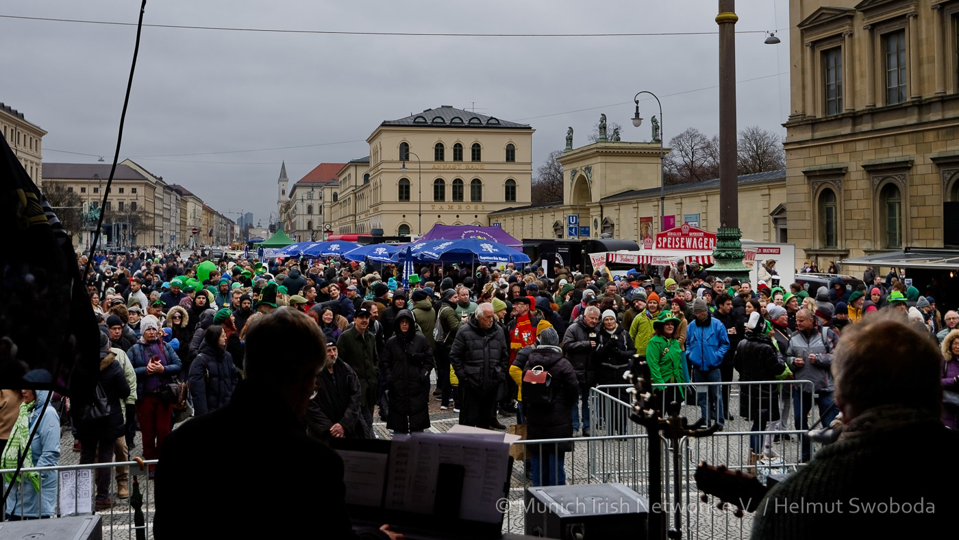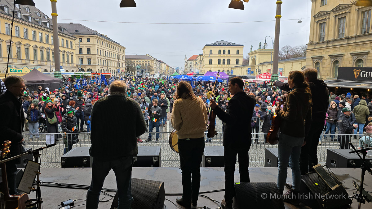 Trotz wechselhaften Wetters zog die Pre-Parade-Party 2025 zahlreiche Besucher auf den Odeonsplatz an. Am Samstag verwandelte sich der Odeonsplatz erneut in eine riesige Irish-Festival-Bühne, die vor allem ein jüngeres Publikum begeisterte. Das vielfältige Programm präsentierte international bekannte Bands und sorgte mit mitreißenden Klängen für ausgelassene Stimmung.